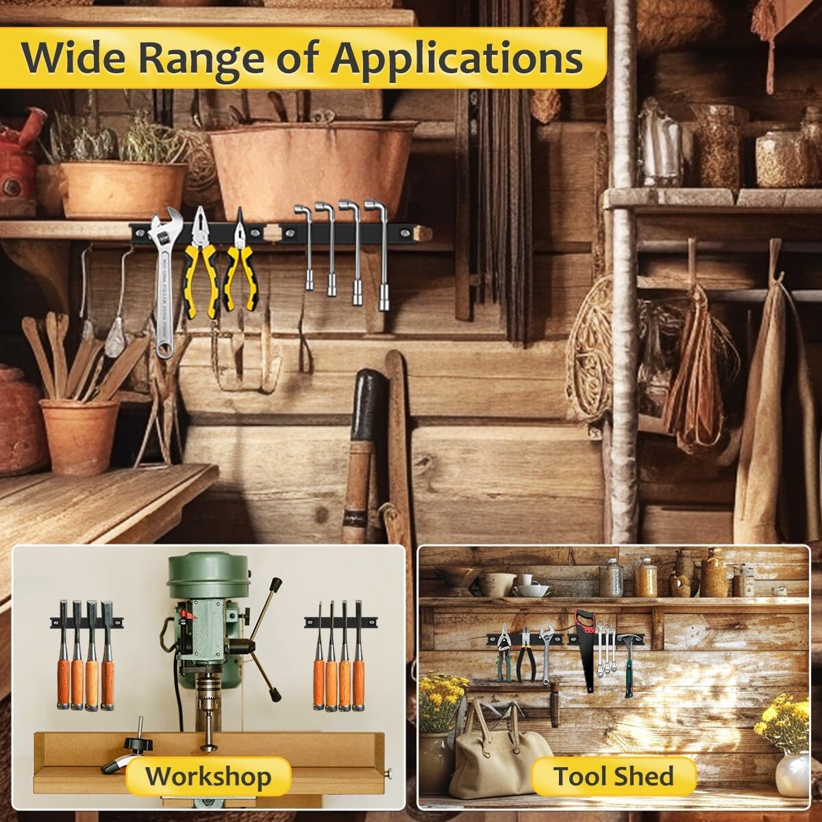 Versatile tool accommodation: With its strong suction, the finely manufactured magnetic bar can hold a wide range of tools, including knives, wrenches, pliers, scissors, keys, etc., keeping your tools organized and clearly visible.