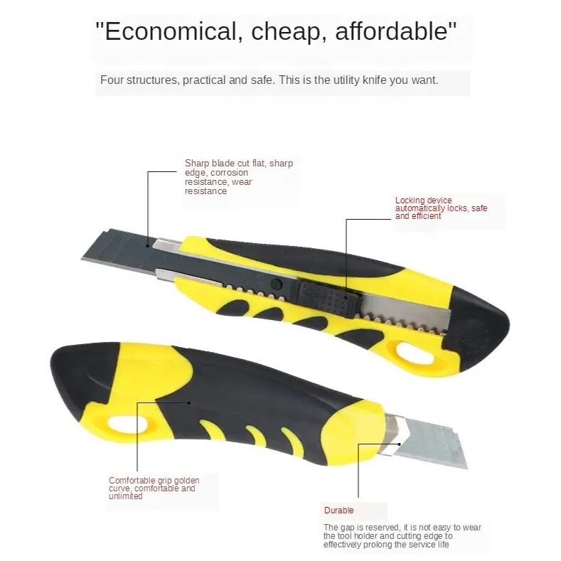 Safety and convenience: The safety lock on the knife can be safely locked in any position to ensure the safety of use. The blade is pre-cut in sections, so the old part can be easily removed to keep the blade keen at all times.