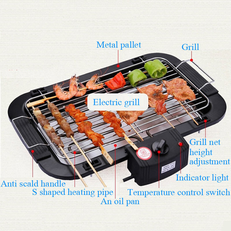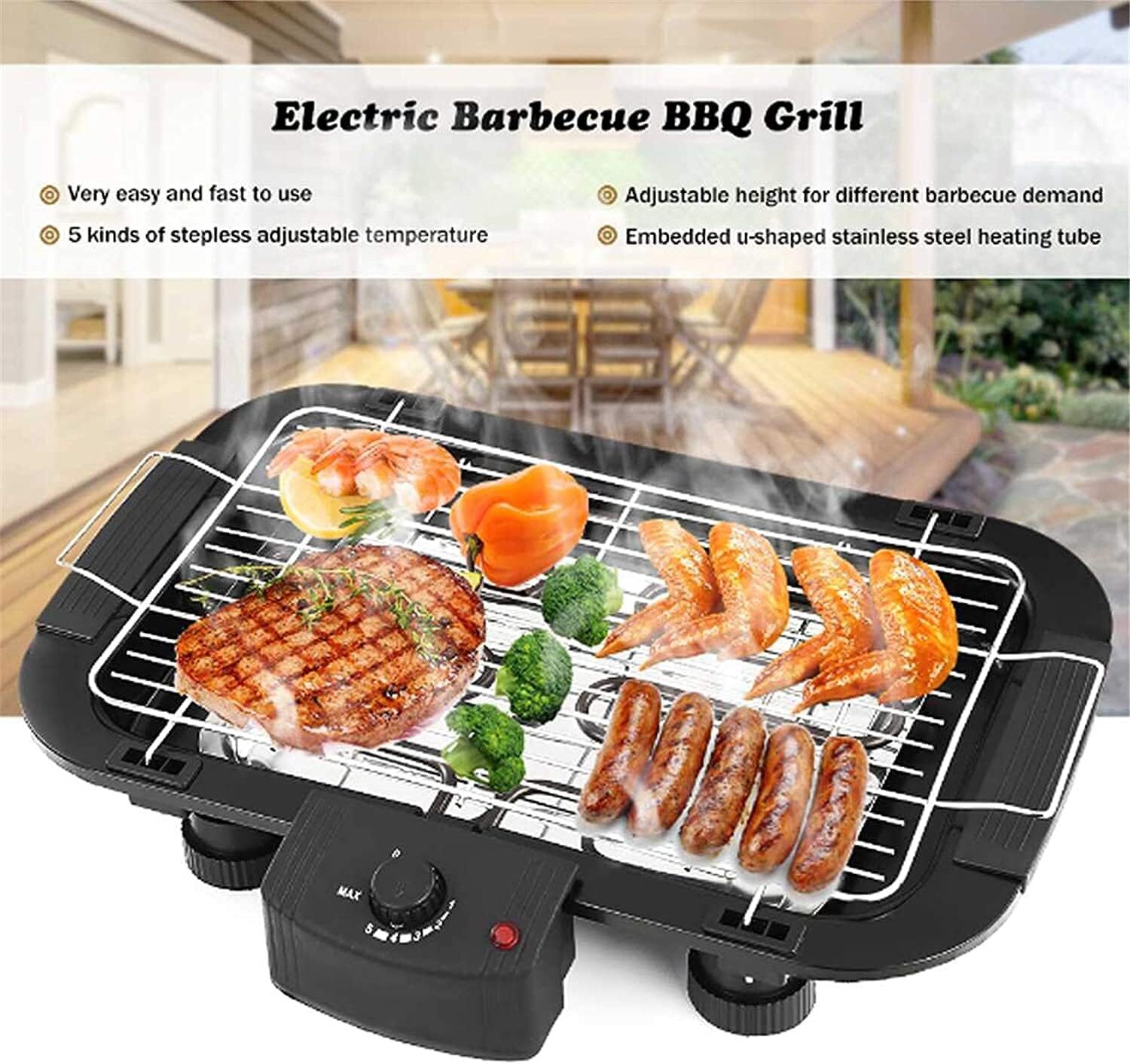 This barbecue grill is rust-resistant and durable. It offers 5 adjustable temperatures with a premium thermostat that auto-shuts off over rated heat. Features a large height-adjustable grill, U-shaped stainless steel heating tube for even cooking, anti-scald handles, anti-skid feet, and a stainless steel drip tray for easy cleaning. Ideal for indoor dinners, garden or beach gatherings.