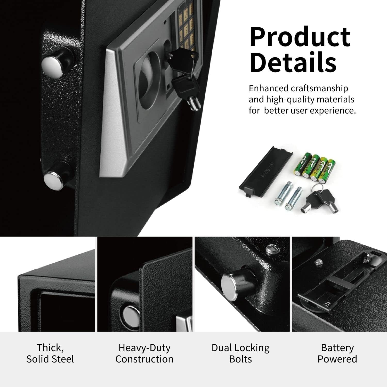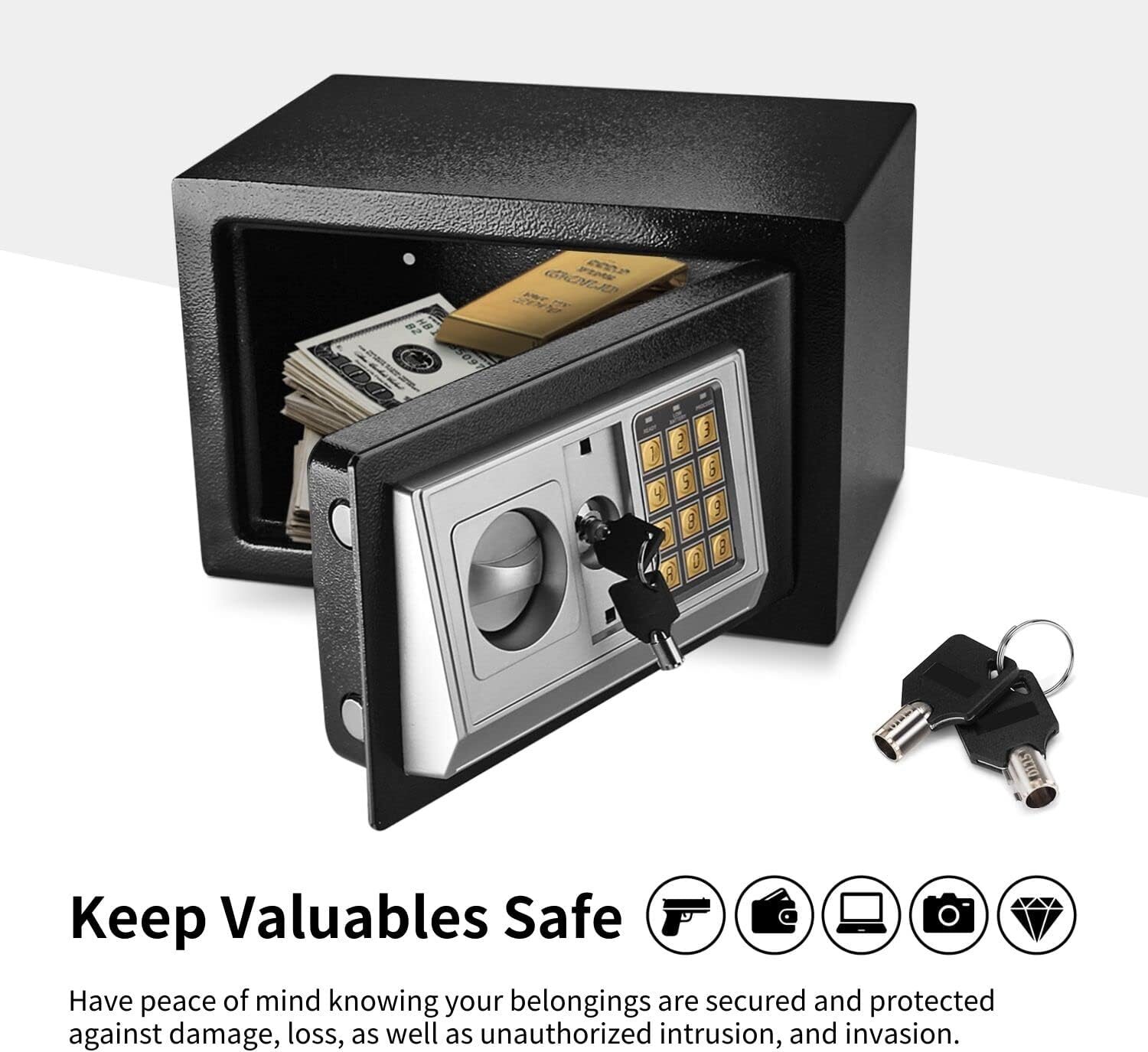 Flexible Unlocking Options: The electronic safe box offers dual unlocking methods - password and emergency key. It allows for free setting of a 3-8 digit electronic password, providing convenience and flexibility.