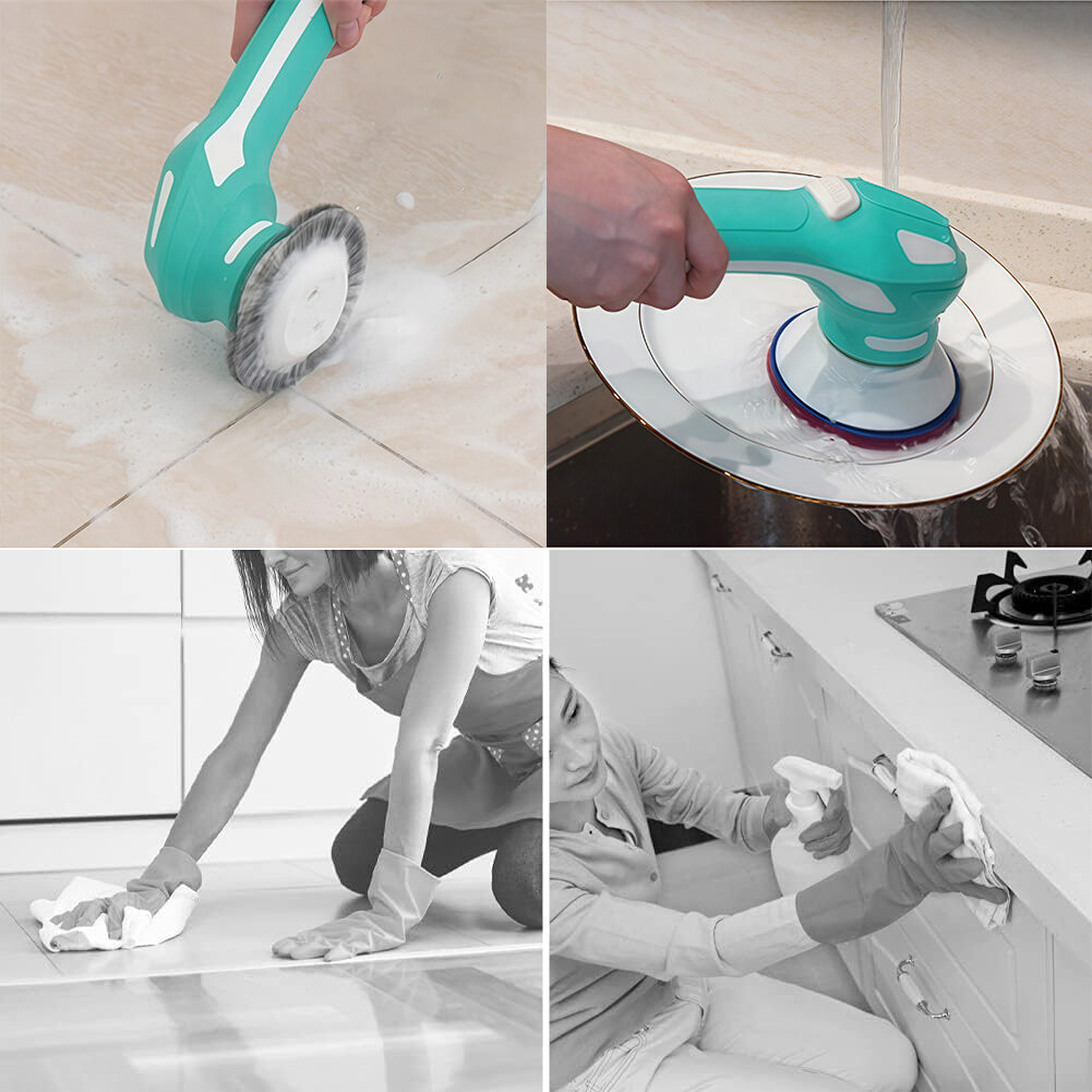 Multiple Replaceable Accessories: Equipped with 4 replaceable power scrubber brush heads and 4 replacement pads, along with a high 360 - degree rotation feature, it is highly versatile. It can effectively clean various surfaces including showers, tiles, bathroom (bathtub), floor, kitchen, car, sink, wall, and window, meeting a wide range of cleaning needs.