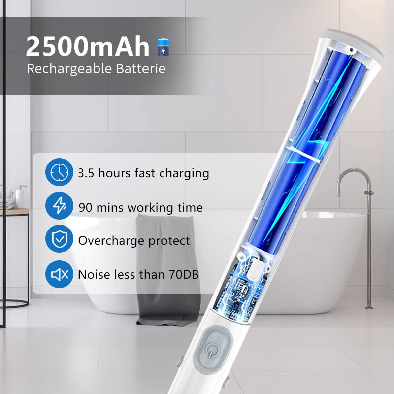 Long-Lasting Battery Performance: Boasts up to 90 minutes of battery life, ensuring uninterrupted cleaning sessions, whether for quick sink scrubs or full bathroom deep cleans.