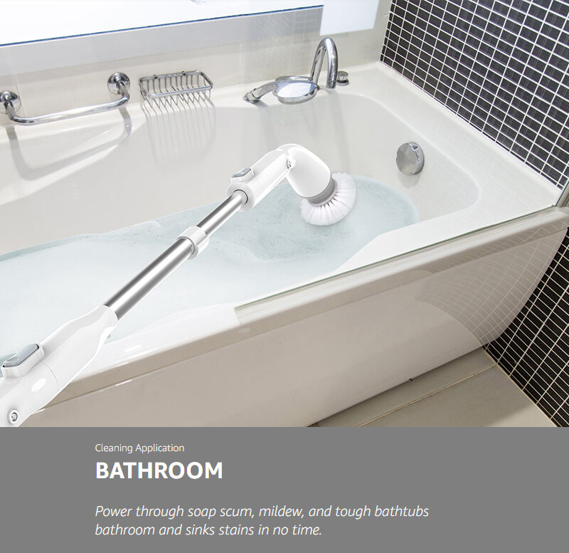 Ergonomic Design to Ease Strain: Equipped with a 45° rotating brush head and an extendable handle, allowing easy access to hard-to-reach spots (e.g., tub bottoms, high corners) without bending, reducing back pain-ideal for seniors and arthritis sufferers.
