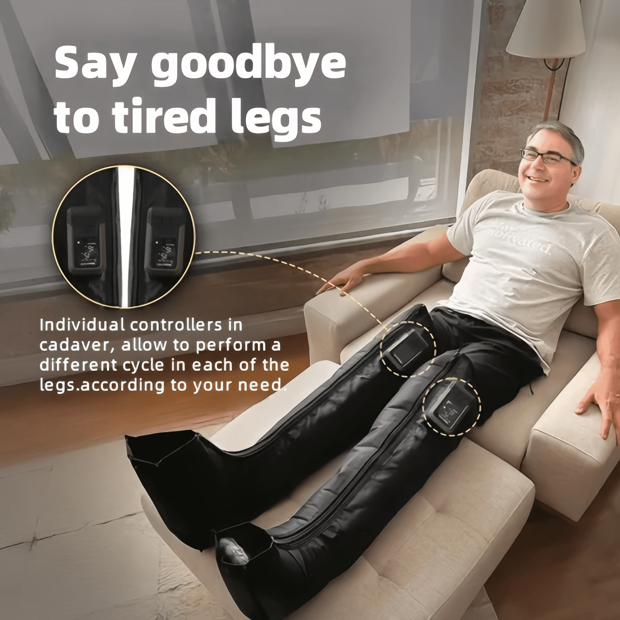 The Air Wave Leg Massager delivers professional relief with 5-zone compression and 3 smart massage modes for improved circulation. Customize your session with 10 pressure levels (60-200mmHg) and 3 timer options (10/20/30min). The soothing heat function (<43°C) enhances relaxation, while the 4000mAh battery provides 80 minutes of cordless use. Featuring quiet operation (<60dB), Type-C charging, and an intuitive digital display, it's perfect for home or office. Compact yet powerful, it effectively combats leg fatigue and tension.