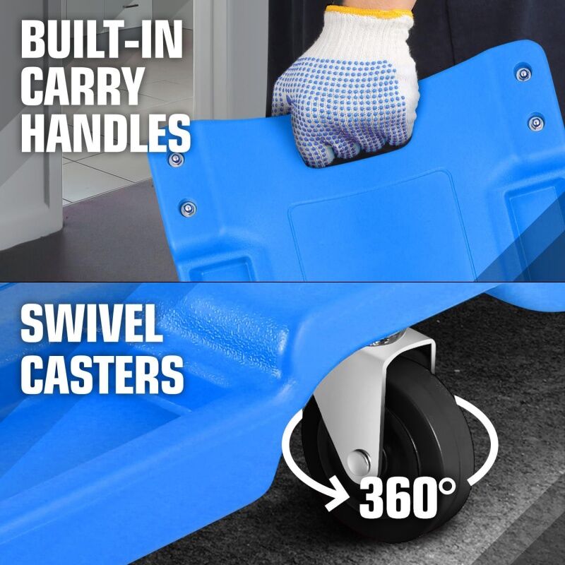 Portable for Easy Maneuverability: Equipped with a carrying handle at the bottom, this rolling cart is easy to pick up, position, and transport. This portability allows for effortless use in garages, workshops, or other workspaces.)