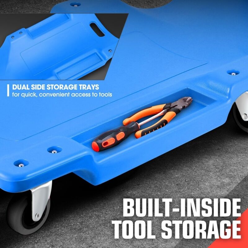 Ergonomic Design for Enhanced Support: Features a built-in shoulder recess that provides additional support from the frame when sitting slowly on the end of the creeper. The padded headrest offers extra relief when laying back, ensuring a comfortable resting position during use.