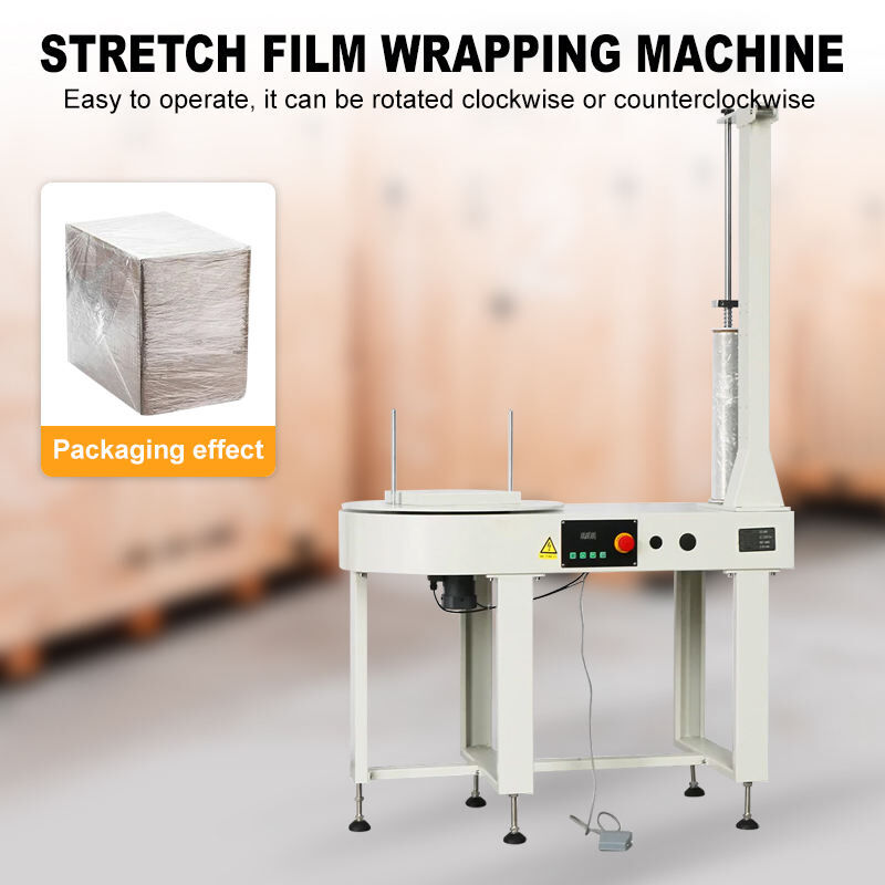 This semi-automatic palletizer combines versatility and efficiency for commercial packaging. Operating on 220V AC single-phase power (60Hz, 120W), it handles packages up to 900x900x900mm with a 30kg max load. Compatible with LLDPE film rolls (100-900mm width, 17-35µm thickness) and standard 76mm inner core rolls, it features a 30 RPM turntable for consistent wrapping. With a compact 1150x600x1861mm design and 120kg weight, it's space-saving, durable, and ideal for businesses seeking reliable, cost-effective palletizing solutions