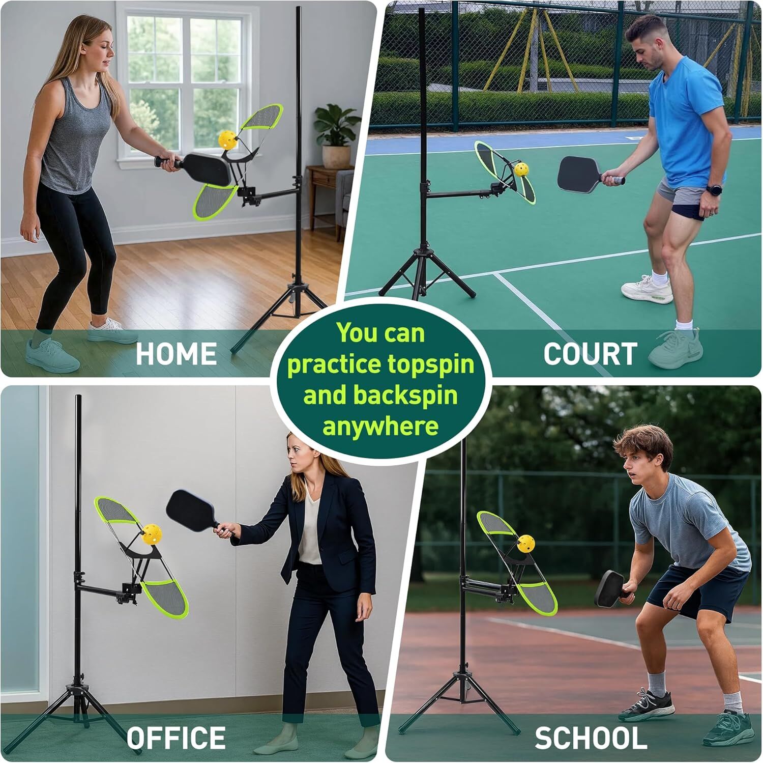 Auto-Rebound Training System:Top spin pro pickleball trainer's otating ball + rubber rebound ring,200+ strokes in 3 minutes (no ball retrieval),3x faster muscle memory development,Pro-approved topspin training method,Corrects "scooping" via low-to-high swing path