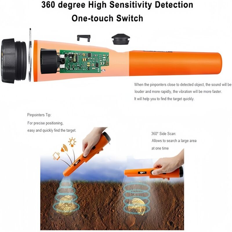 Widely Application: This metal detecting pinpointer can do various types of jobs like finding coin, gold, silver, relics, jewelry to help you easily find treasures or missing metal objects whether indoors, outdoors, in wall, sand, grass or soil, even in a extreme temperature range of -35ºF (-37ºC) to 158ºF