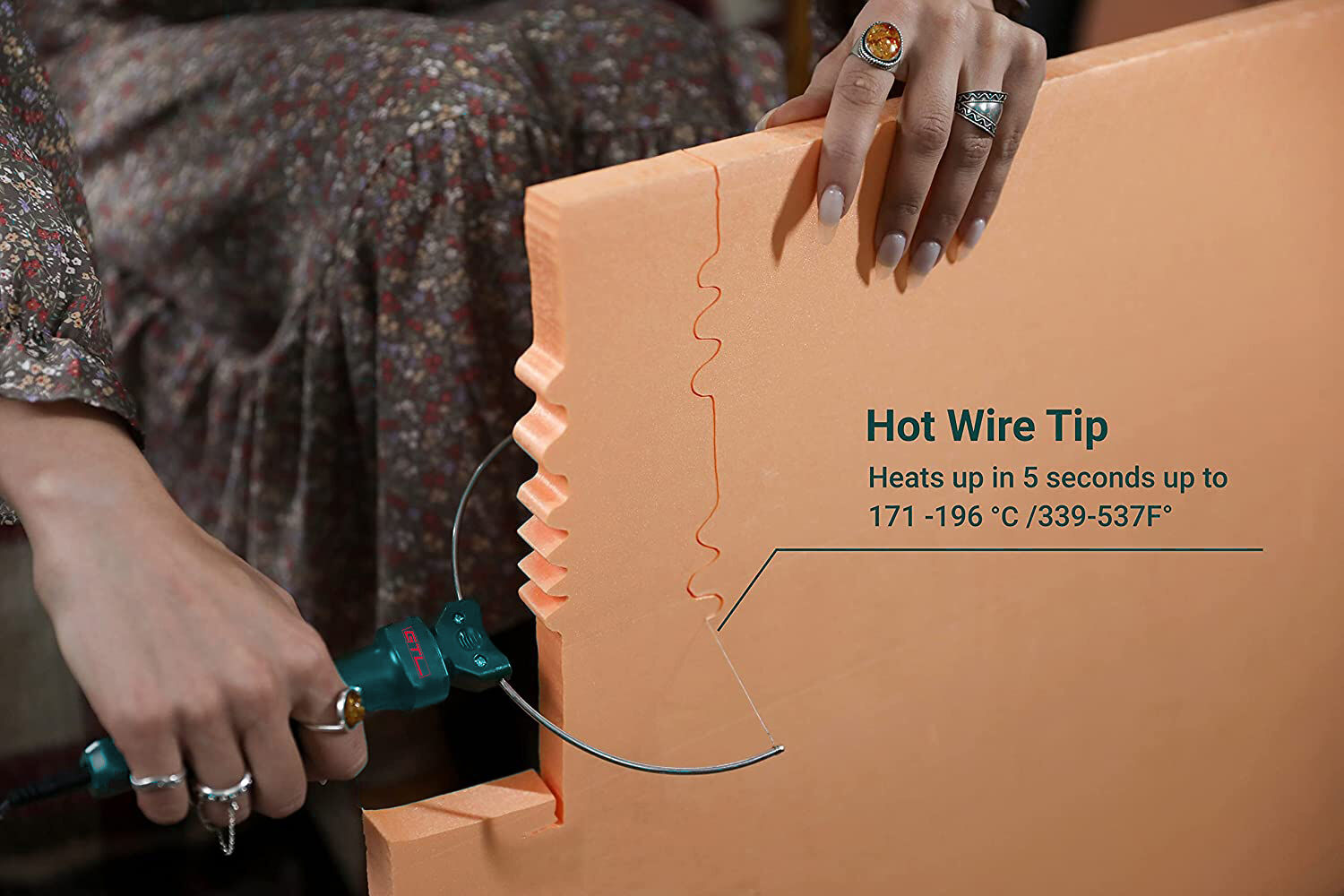 Smooth and Efficient Cutting: The hot wire foam cutter tips can heat up to 100ºC within 10 seconds, allowing for smooth and efficient cutting of foam board or foam block from any angle.