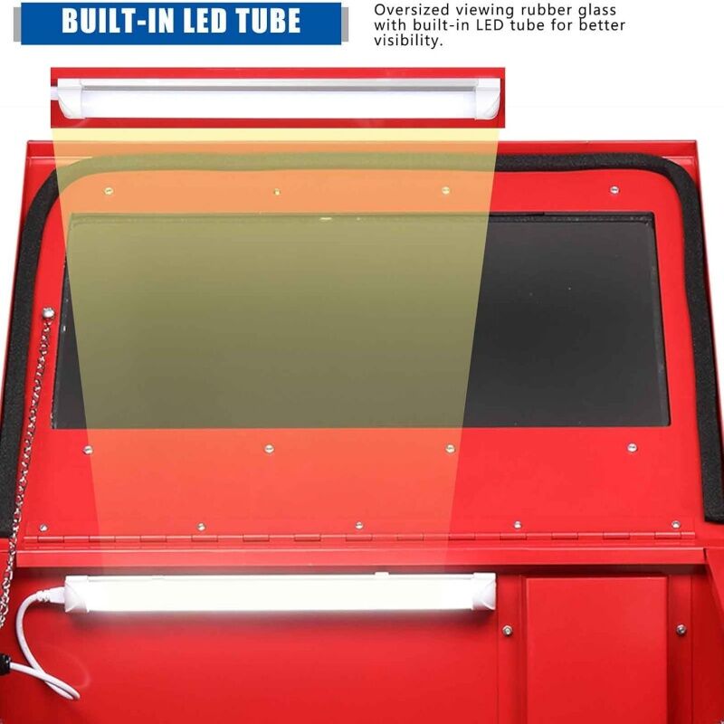 Enhanced Visibility and Precision: The generously sized viewing window (565mm x 260mm) and integrated internal light provide excellent visibility of the workpiece, allowing for precise control and monitoring of the blasting process.