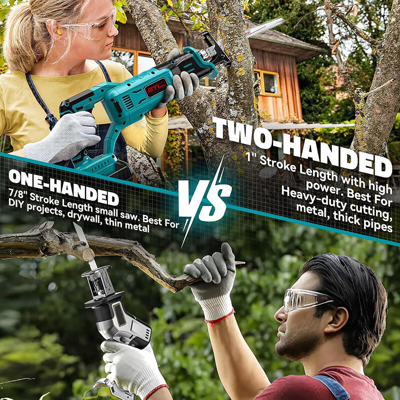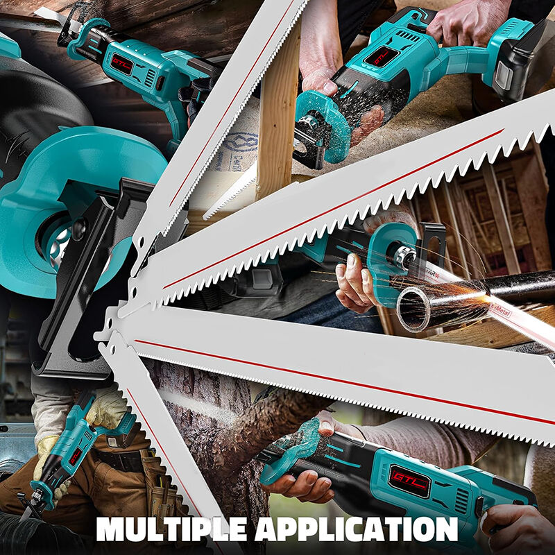 Multipurpose Blades: The electric reciprocating saw includes different blades to handle more applications and tasks. The cordless reciprocating saw cutting capacity:10mm(steel),150mm(wood)
