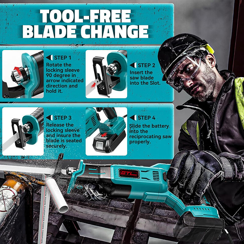 Easy To Use: First select the corresponding saw blade, flatten the reciprocating saw, rotate the clamp counterclockwise and insert the saw blade, once the blade is inserted loosen the clamp and the saw blade will be automatically clamped
