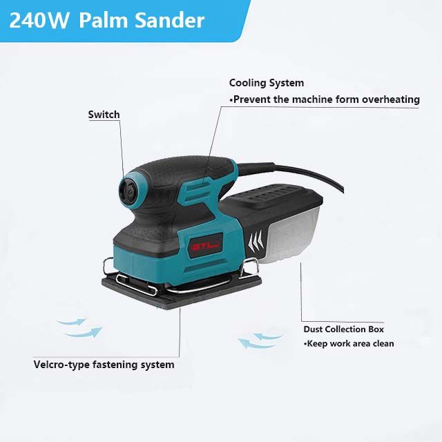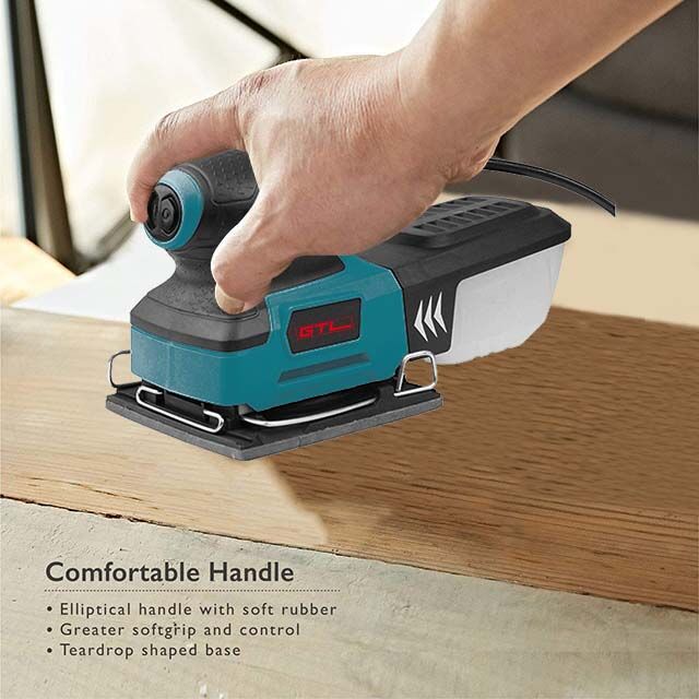 Corded Power: With a 240W motor, this palm sander is stronger than most and can handle major jobs with ease, rotating at 15000 OPM.