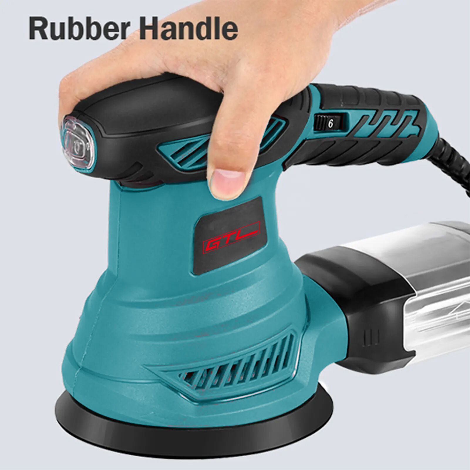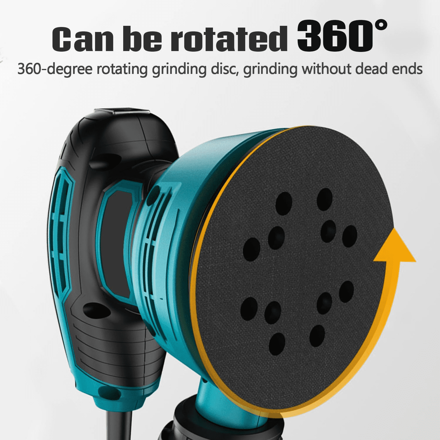 The palm sander features a powerful 400W cooper motor up to 13000 rotations per minute, delivering strong power to the sanding disc for dust removal; Suitable for sanding on wood, metal, and plastic or removing paint, and stains of materials