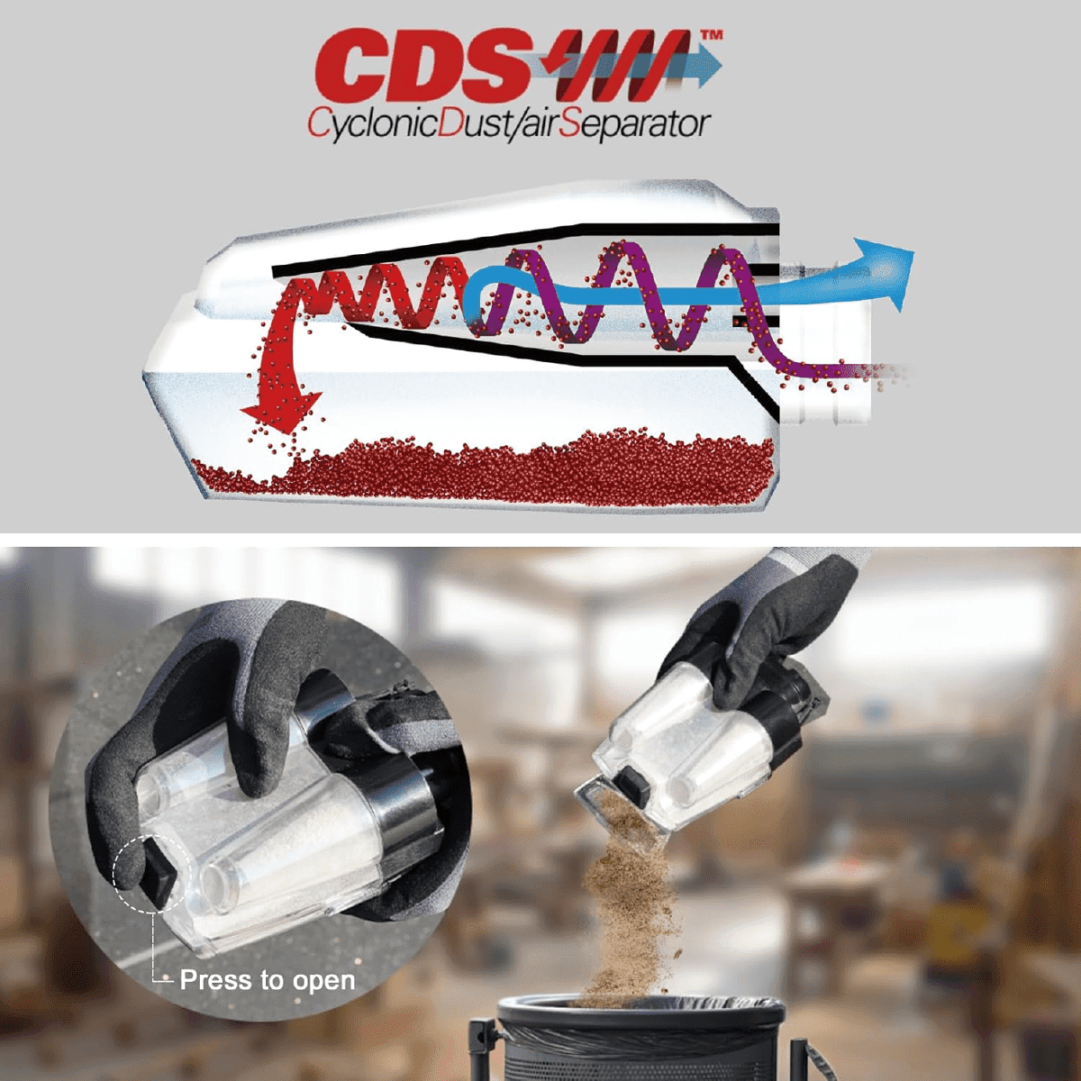 This palm sander features air sedimentation technology makes dust settle to the bottom of the box,effectively separates extracted dust from the air,greatly reducing the leakage of dust and caring for your health.Equipped with a vacuum cleaner adapter to attach the dust port to other vacuum cleaner with 1-1/4"or 2 -1/2" hose.