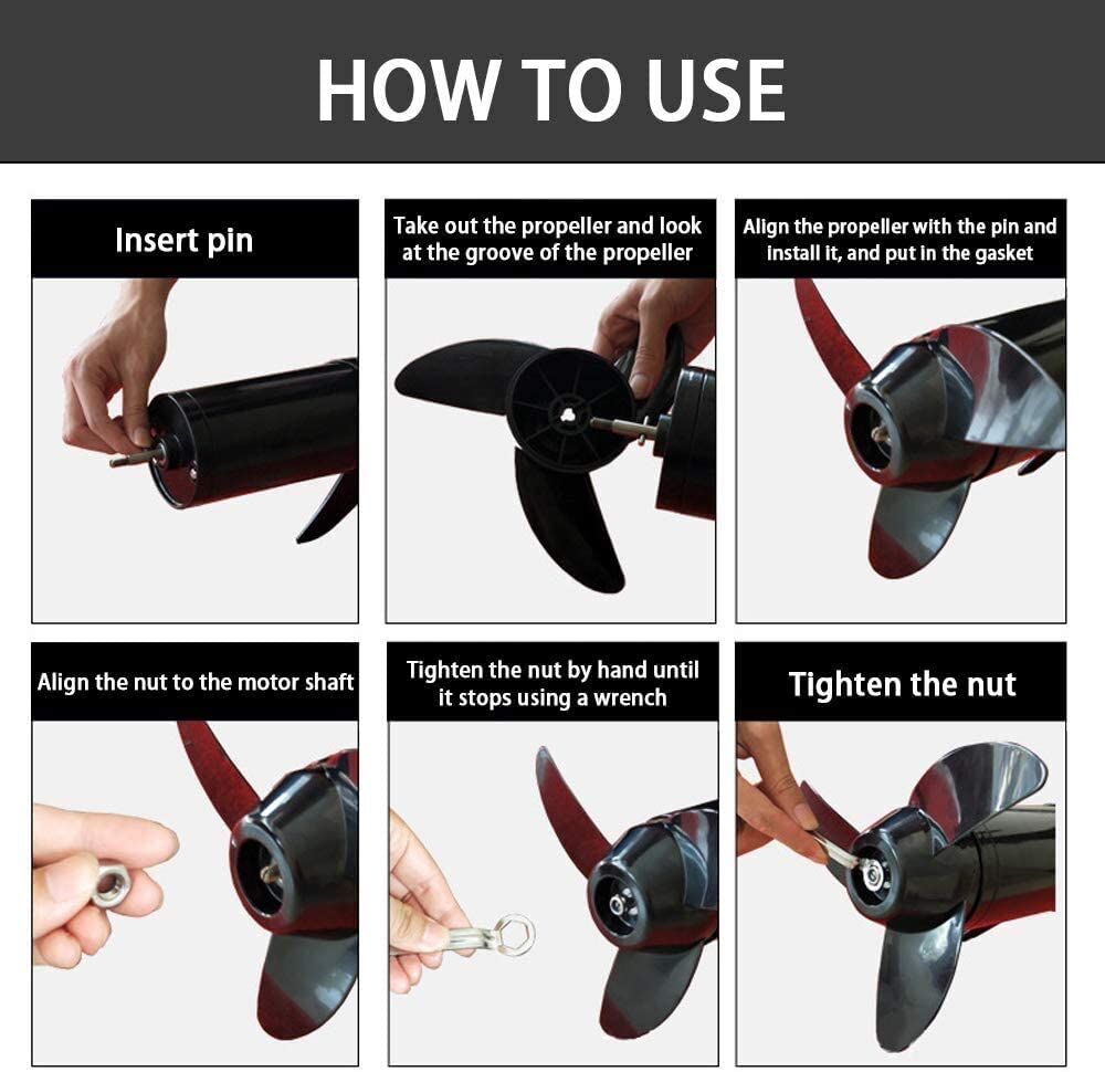 Construcción robusta para uso en agua salada o dulce: El motor eléctrico de arrastre está equipado con una hélice de tres palas, que puede mejorar la motivación y la eficiencia. Tres palas afiladas facilitan la eliminación de algas.
