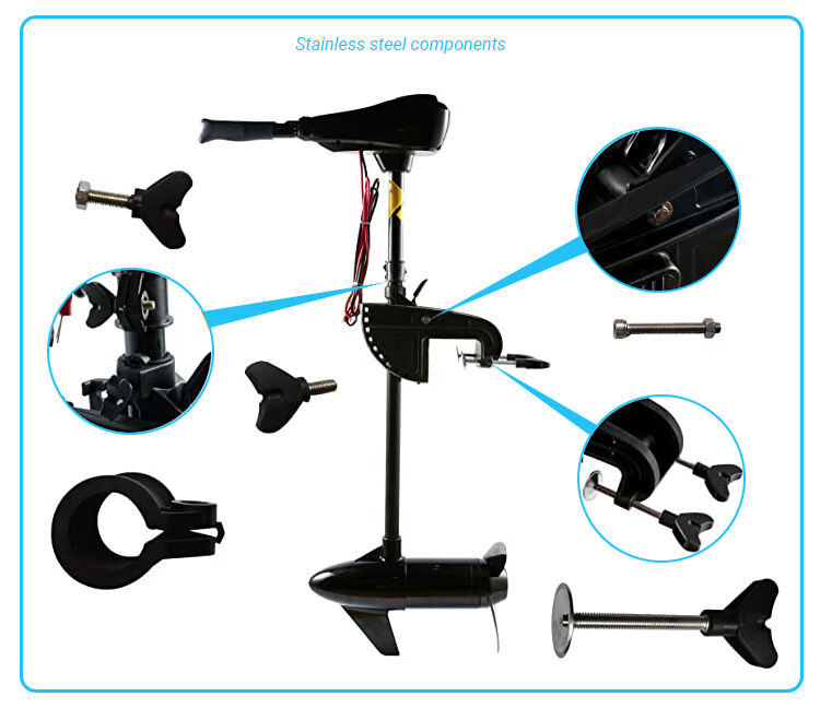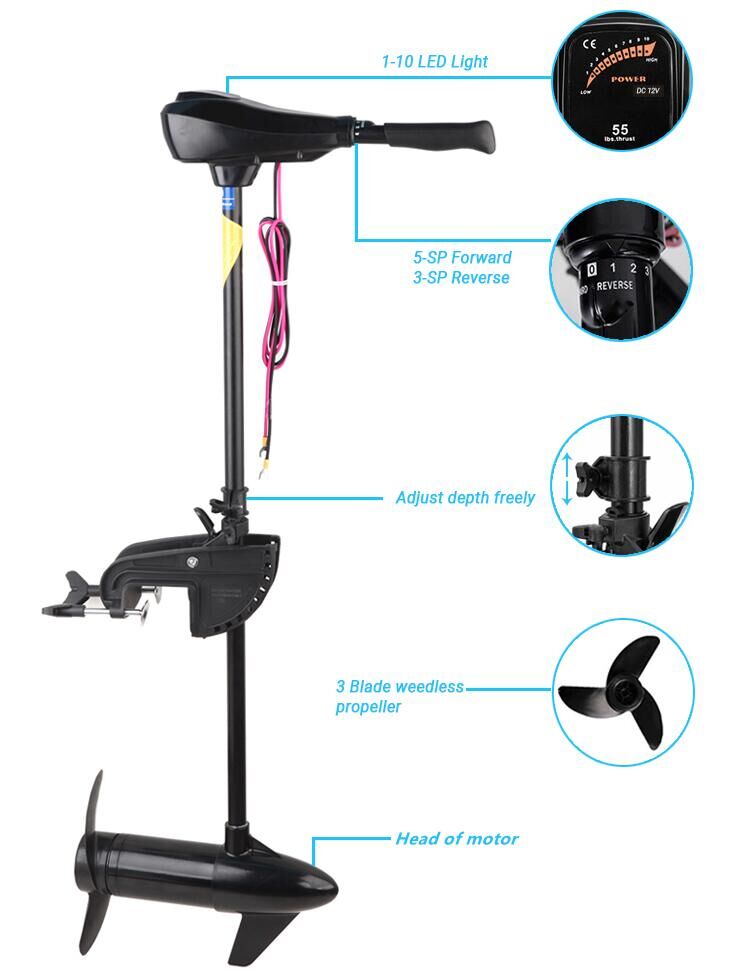 El motor de arrastre está fabricado en cobre puro, con excelente conductividad eléctrica y térmica, ductilidad y resistencia a la corrosión. Además, supera una gran resistencia al agua para aumentar la velocidad de propulsión. Su ángulo, engranaje y altura se ajustan libremente. Es adecuado para diversas embarcaciones pequeñas, como barcos de pesca, botes y botes inflables.