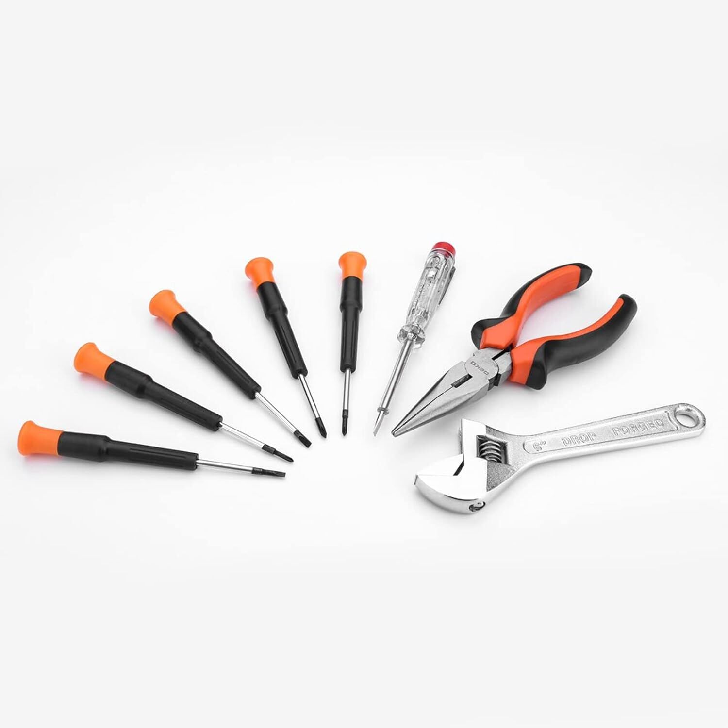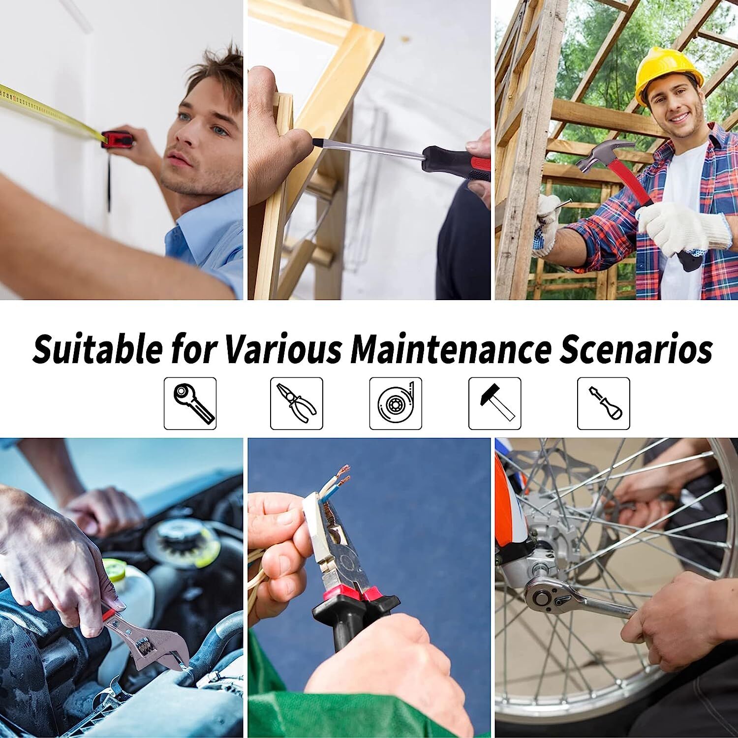 Este juego de herramientas es esencial para reparaciones domésticas y bricolaje, ideal para reparar muebles, electrodomésticos, coches y otros problemas comunes.