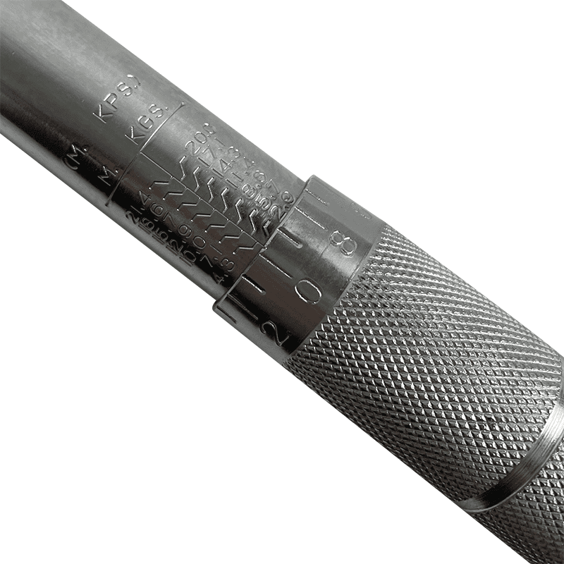 Escala de alto contraste y doble rango: precalibrada a ± 4 %. Consejos: Para un ajuste preciso de la escala, utilice la escala imperial. La fórmula de conversión entre la escala imperial y la métrica es: 1 N⋅m = 8,86 in·lb
