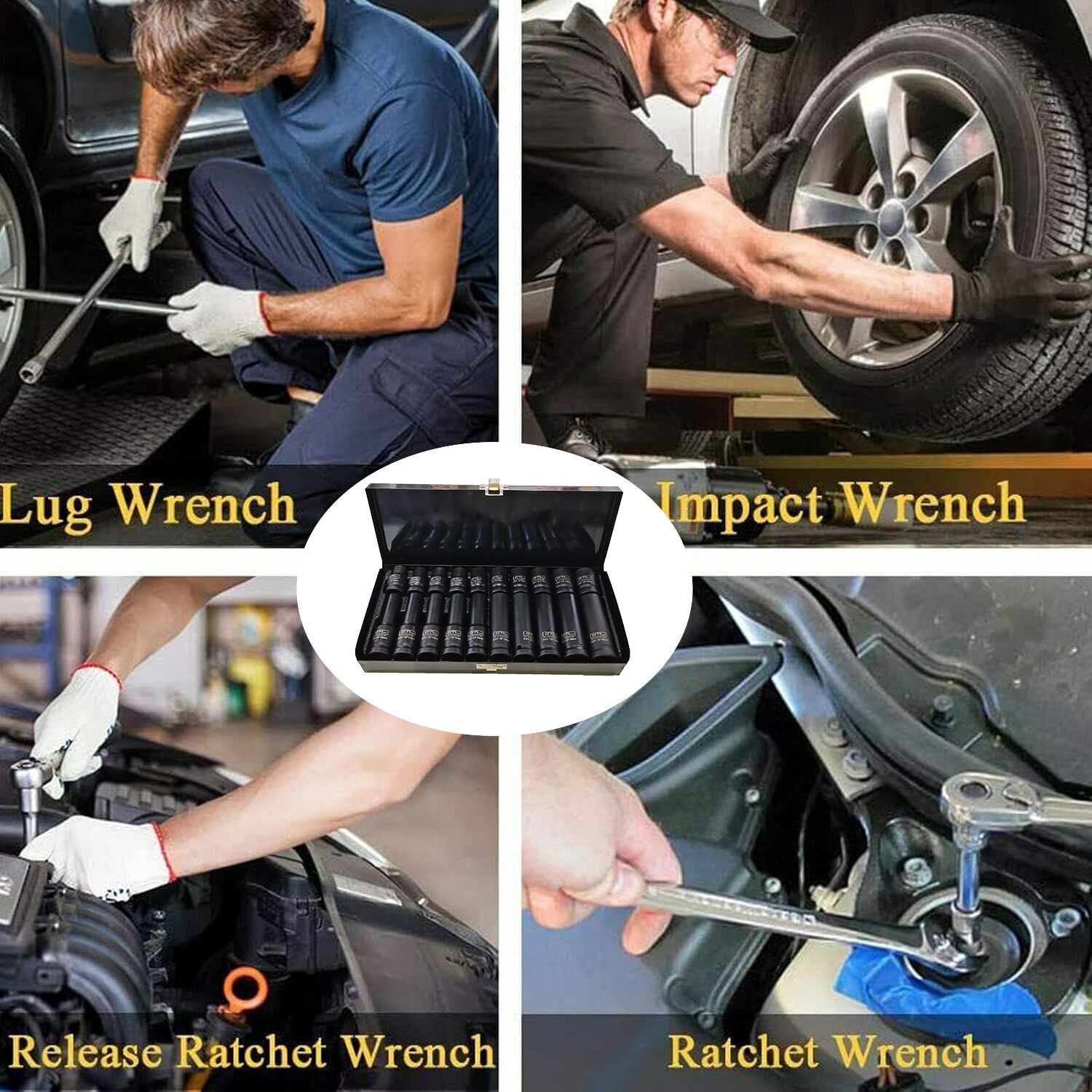 Este juego de vasos de impacto presenta un innovador diseño de pared delgada para acceder a espacios estrechos, lo que aumenta su versatilidad. Fabricado mediante extrusión en frío para mayor densidad y resistencia, resiste la deformación bajo un alto torque. Fabricado con acero especial al cromo-vanadio, forjado en estampa y tratado térmicamente, ofrece dureza, tenacidad, resistencia a la corrosión y al desgaste ideales para una larga vida útil.