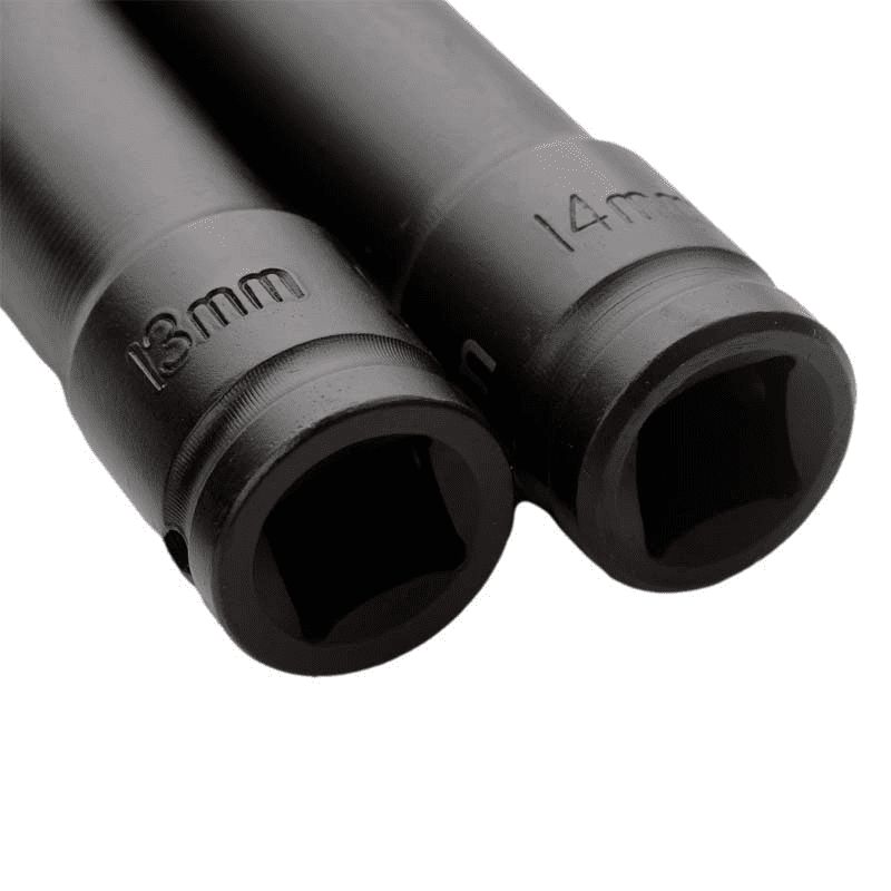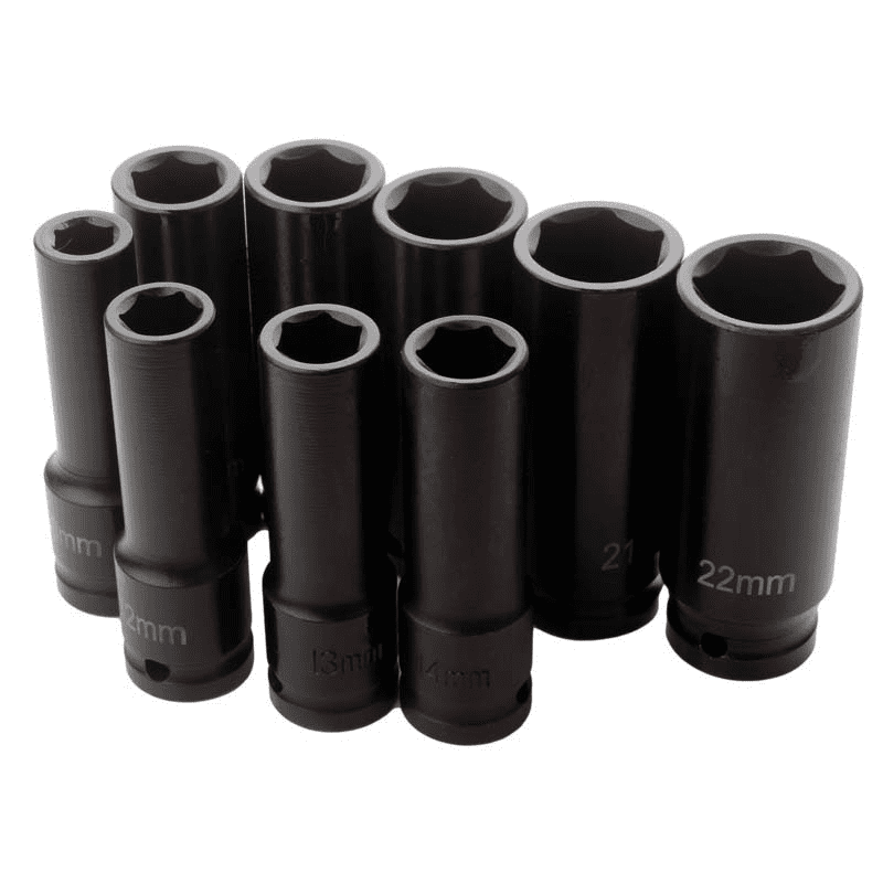 Cobertura completa de tamaños: Este juego de 13 llaves de vaso de impacto incluye 13 tamaños de uso común, desde 10 mm hasta 27 mm (10-11-12-13-14-15-17-18-19-21-23-24-27 mm), que satisfacen la mayoría de las necesidades de uso diario y profesional con llaves de impacto para diferentes tamaños de fijaciones.