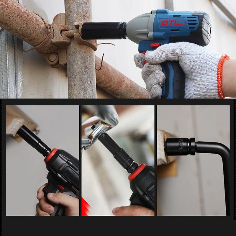 Alta maniobrabilidad: Equipado con una junta universal de 1/2" y una barra de conexión, el juego se adapta a espacios de trabajo angulados o descentrados, garantizando un funcionamiento fluido incluso en posiciones no rectas.