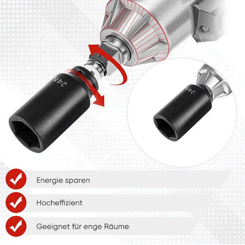 Construcción duradera resistente a impactos: Diseñados para su uso con herramientas de impacto, los vasos y accesorios están fabricados con materiales robustos que resisten el desgaste, las grietas y la deformación bajo alto torque. Esta durabilidad garantiza una fiabilidad a largo plazo, incluso en trabajos mecánicos pesados.