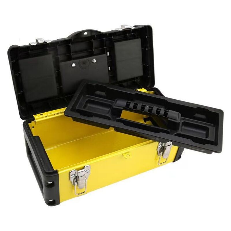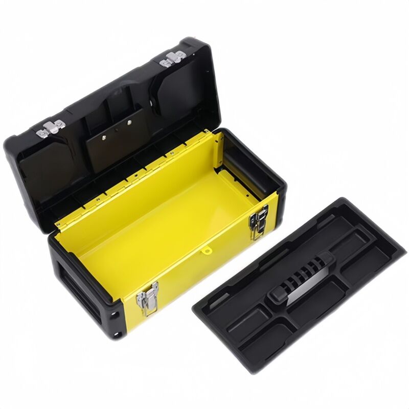Esta caja de herramientas portátil está fabricada en acero inoxidable de alta calidad, lo que garantiza una gran durabilidad y una protección fiable para las herramientas. Su tamaño compacto (45 x 24,5 x 21,3 cm) y su diseño en color amarillo la convierten en un accesorio versátil y atractivo para cualquier hogar o vehículo.