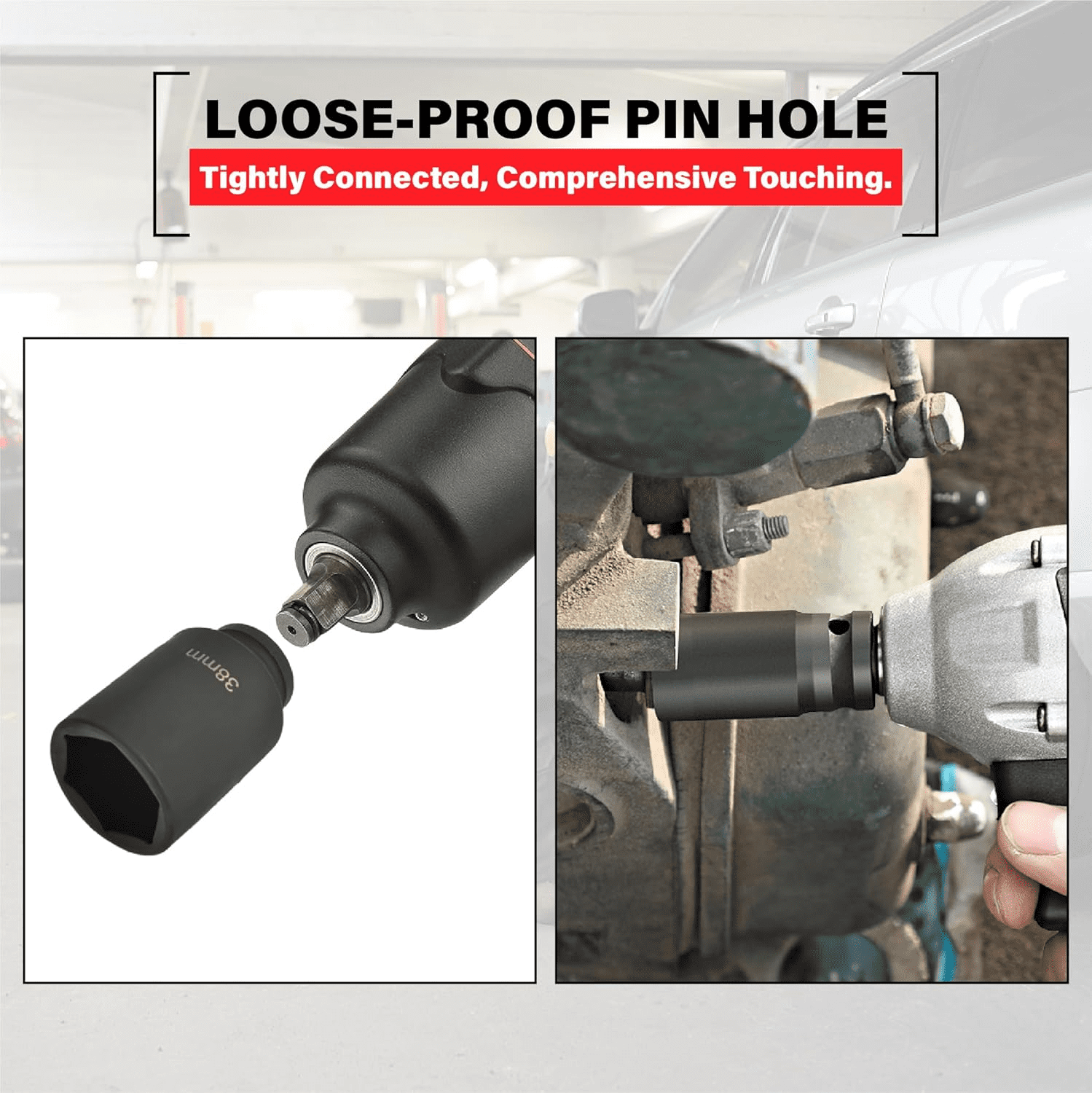 Aplicación: Adecuado para usar con todas las herramientas/llaves de impacto neumáticas y eléctricas, barras rompedoras/llaves de fuerza y llaves dinamométricas; para el montaje y mantenimiento de otros equipos grandes o reparaciones domésticas; permite quitar o instalar tuercas con mayor facilidad.