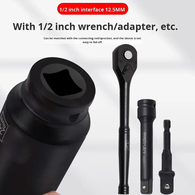 Aplicación: Adecuado para usar con todas las herramientas/llaves de impacto neumáticas y eléctricas, barras rompedoras/llaves de fuerza y llaves dinamométricas; para el montaje y mantenimiento de otros equipos grandes o reparaciones domésticas; permite quitar o instalar tuercas con mayor facilidad.