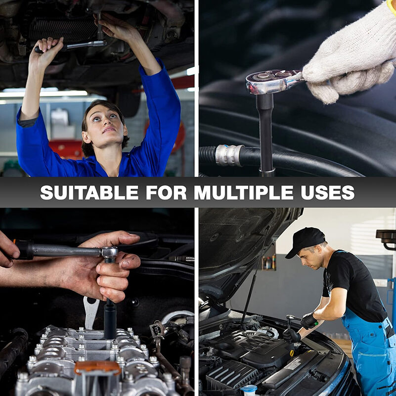 Aplicación: Adecuado para usar con todas las herramientas/llaves de impacto neumáticas y a batería; barras de disyuntor/brazos de fuerza y llaves dinamométricas; montaje y mantenimiento de otros equipos grandes o reparaciones domésticas; permite quitar o instalar tuercas con mayor facilidad.