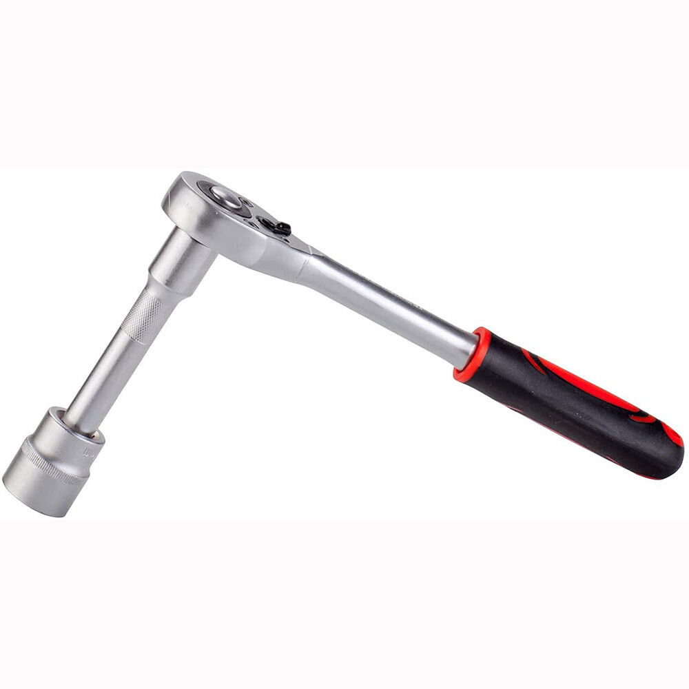 Incluye: juego de vasos, juego de puntas, llave de trinquete y barra de extensión.
