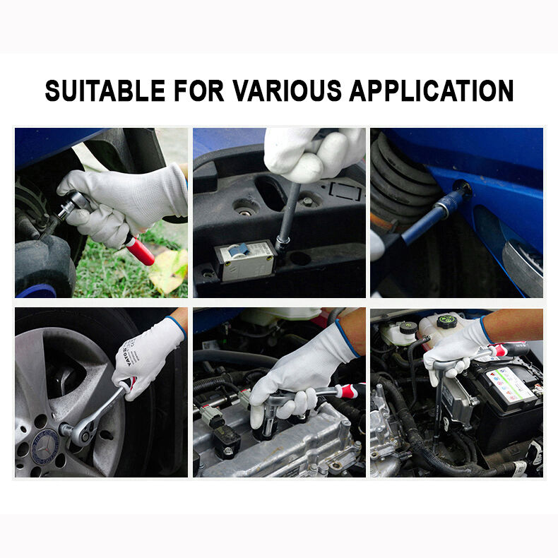 Alta calidad: El juego de vasos está fabricado con CR-V de alta calidad para mayor resistencia y durabilidad, satisfaciendo las necesidades de diferentes usos. Amplia gama de adaptadores y extensiones, ideales para trabajos de atornillado y montaje. Mangos de trinquete de alta calidad (tamaños de 1/4" y 1/2") con mango ergonómico.