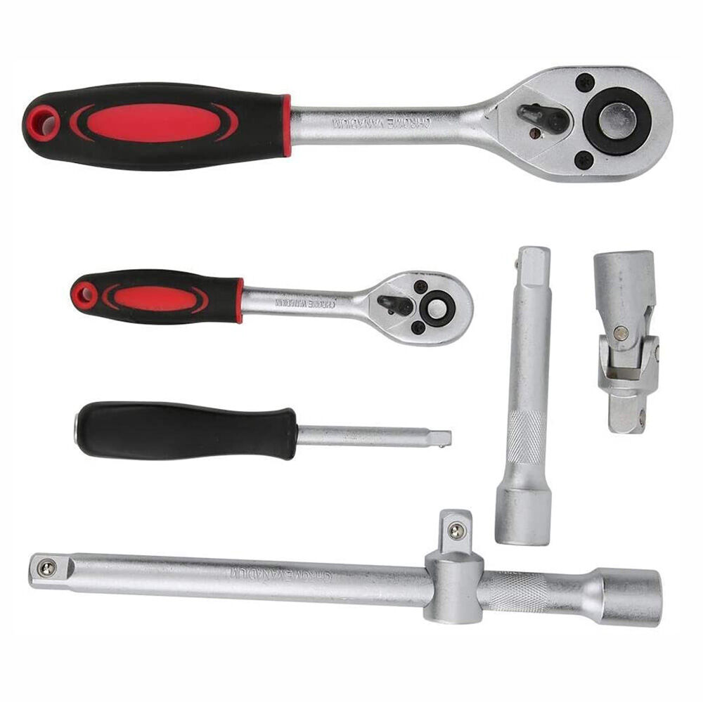 Durabilidad: El juego de llaves de vaso está fabricado con CR-V de alta calidad para mayor resistencia y durabilidad, satisfaciendo las necesidades de diferentes usos. Amplia gama de adaptadores y extensiones, ideales para trabajos de atornillado y montaje.