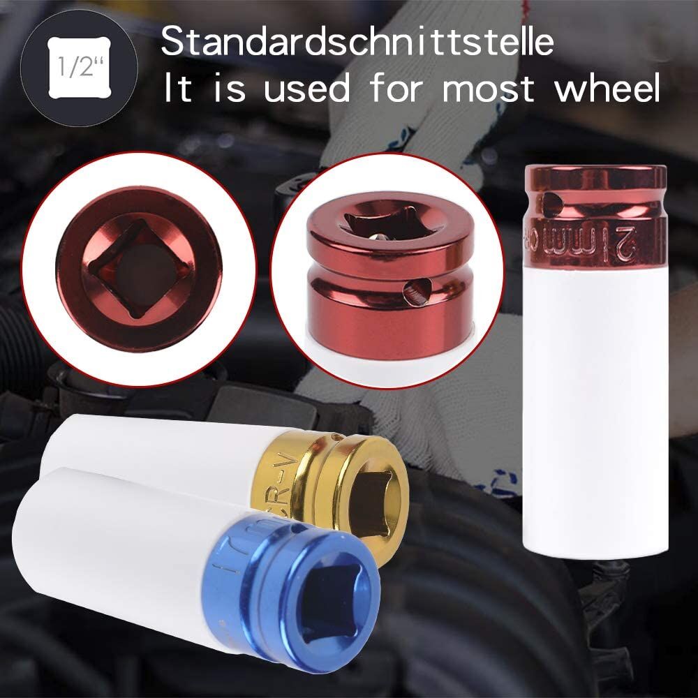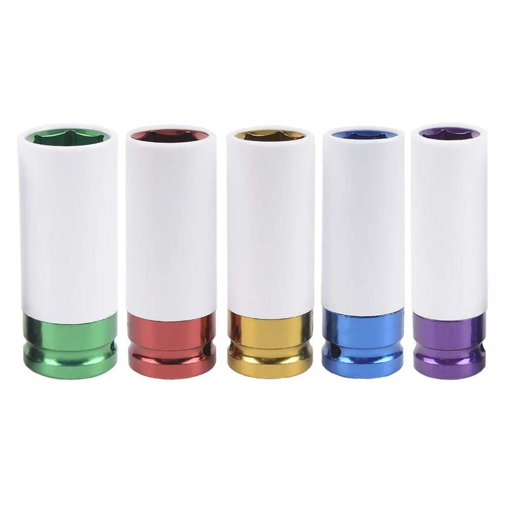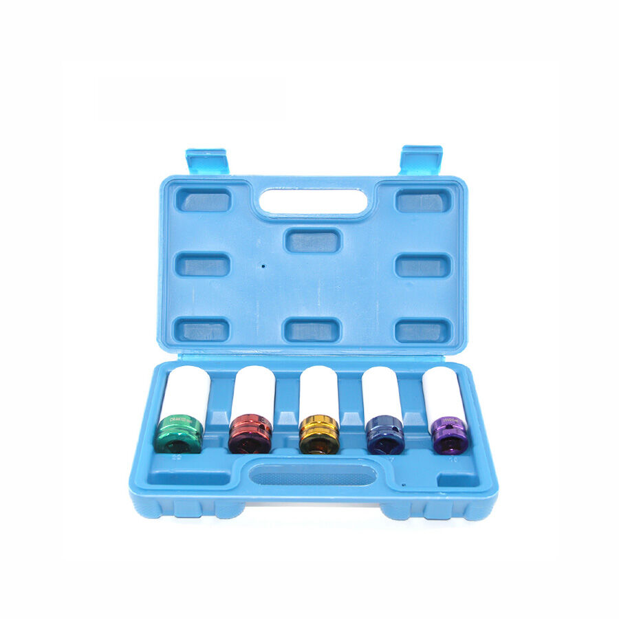 | Item Description: | 1/2" 5pcs Alloy Wheel Impact Socket Sets with Plastic Sleeve and Colour Coded for Tire Replacement Impact Wrench Set- Chrome Vanadium Steel |