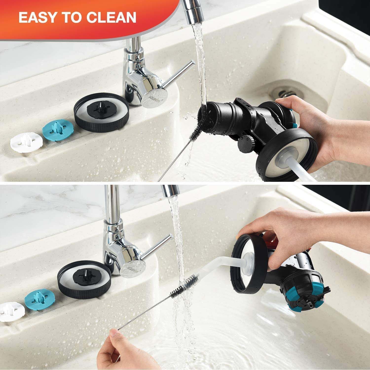 Diseño perfecto para la experiencia del usuario: La pistola de pintura es desmontable, lo que facilita su uso y limpieza. Además, incluye un cable de alimentación suficientemente largo, lo que proporciona libertad de movimiento en un espacio de trabajo más amplio.