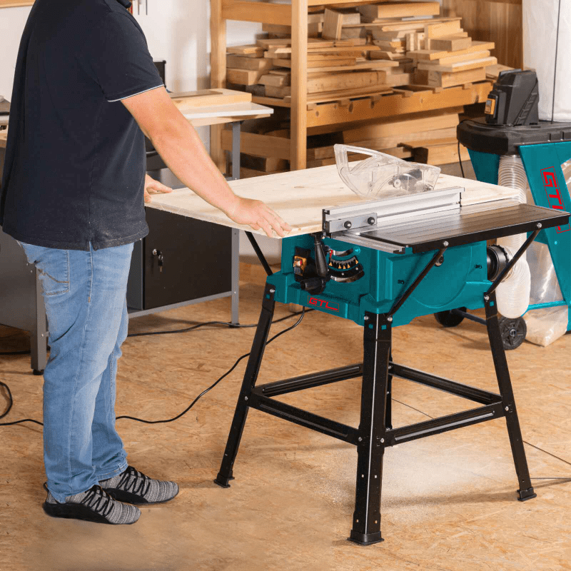 With its dust-extraction port, the table saw can be attached to a vacuum cleaner to efficiently collect any sawdust or debris.