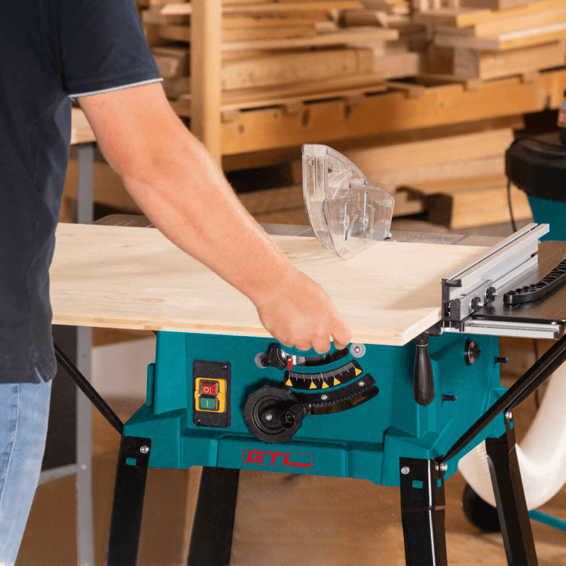 The blade height can be adjusted:meet your specific cutting needs with hand wheel. This table saw has a rack and pinion bevel control that provides 90°cross cutting and 0-45°bevel cutting.