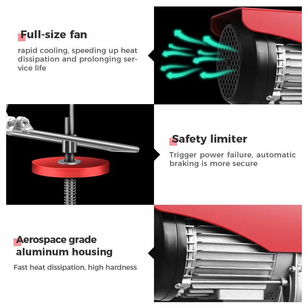 High-Quality Copper Motor: The electric hoist winch adopts a 850W pure copper motor, which features high efficiency and low noise. Furthermore, the electric winch can continuously work for a long time because it radiates rapidly.