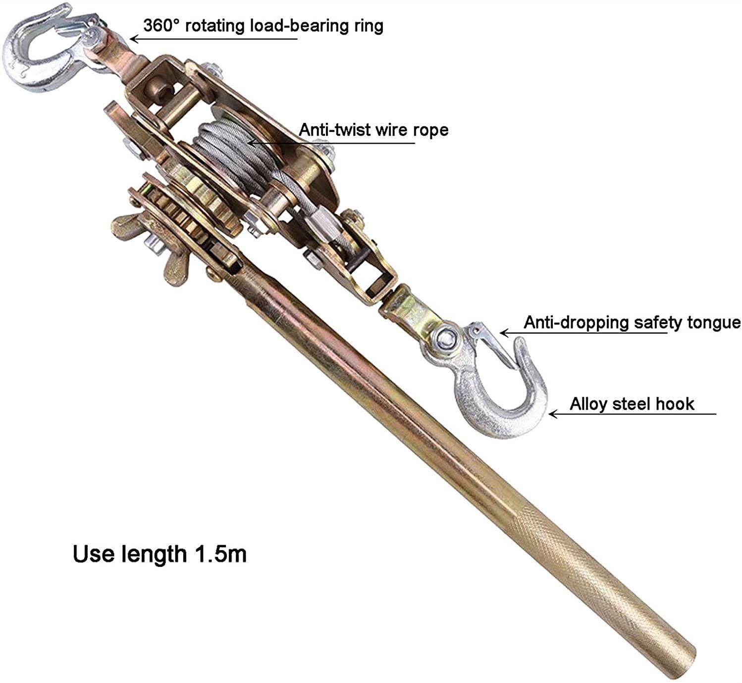 3)The ratchet tractor has a 3 ton load traction, as long as the object does not exceed the load, the rope ratchet tractor is very suitable for long-distance towing, and the cable puller has a spring lock, which can lock the ratchet when the paw is not used, and when needed It can be easily unlocked when the cable is untied