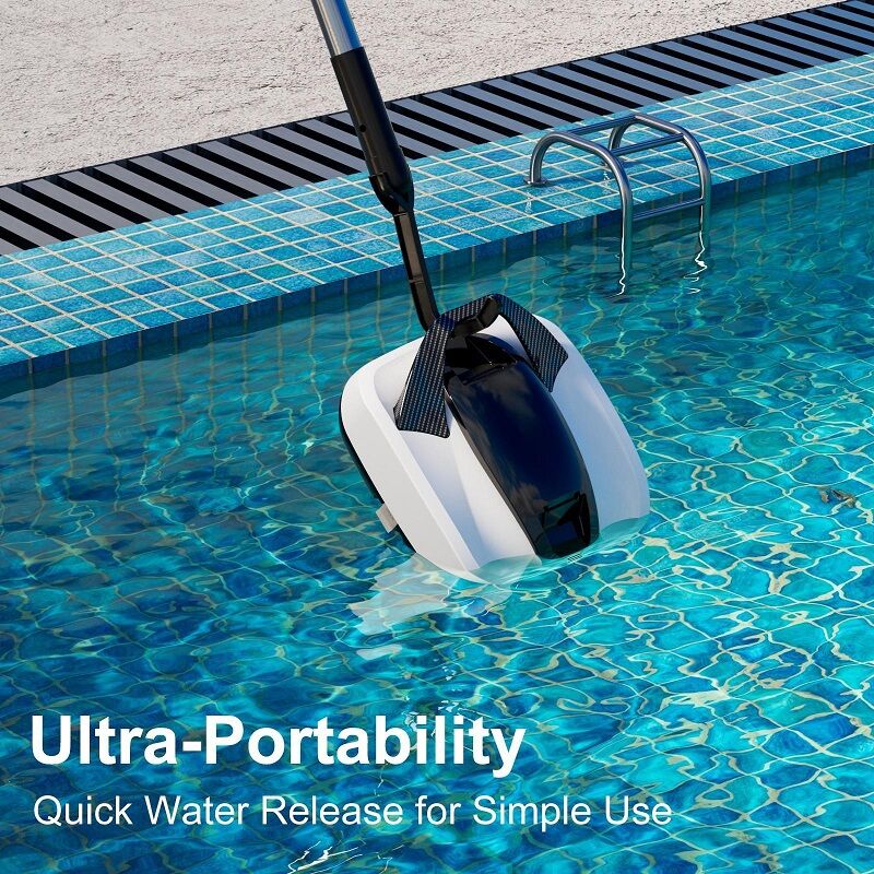 Cordless Pool Cleaner: Sleek design conserves power for optimal cleaning performance, this cordless pool cleaner for above ground pools offers hassle-free, automated cleaning. This pool Cleaner is ideal for both above-ground and flat-bottom in-ground pools.