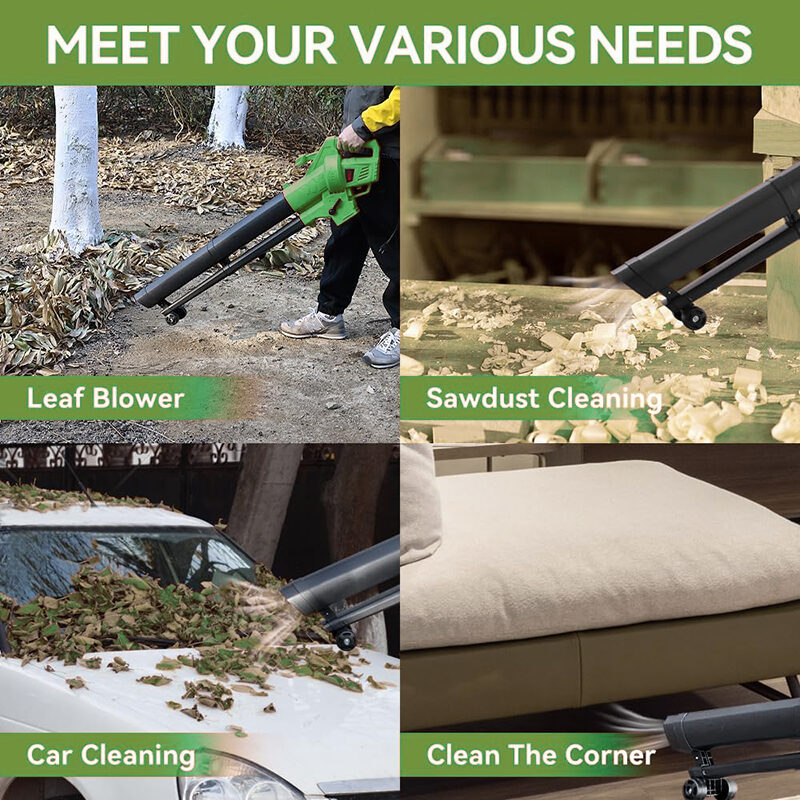 You can not only get blowers for lawn care, but also a leaf vacuum mulcher with 45L bag. Just switch the function knob, to transform the blower and vacuum function conveniently. It will effortlessly clear leaves and debris, perfect for cleaning decks, driveway, roof, garden, sidewalk, patio.