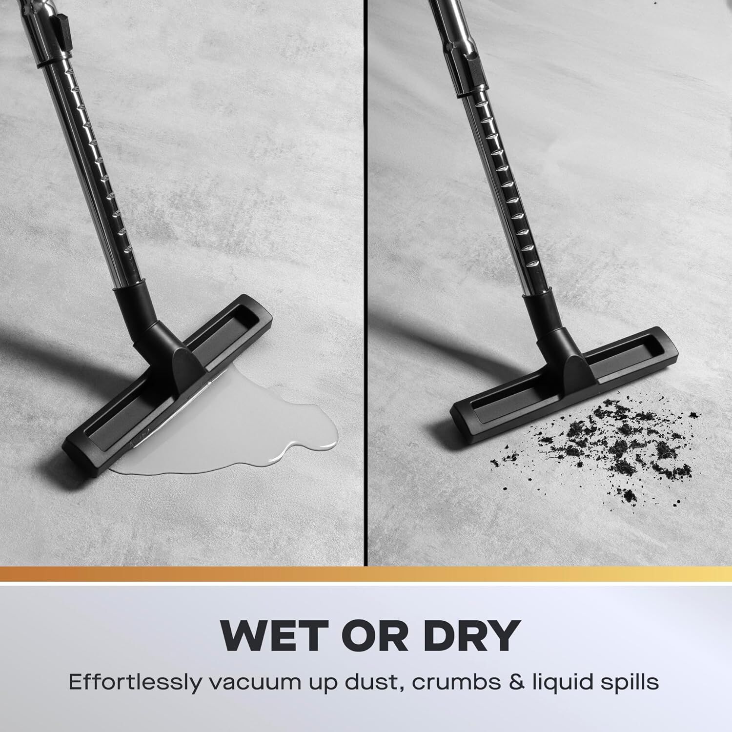 Versatile Wet & Dry Pickup:Designed to handle both liquid spills and dry debris with powerful suction. Effortlessly transition from cleaning up water to collecting dust, chips, and other dry materials without the need for complex reconfiguration.