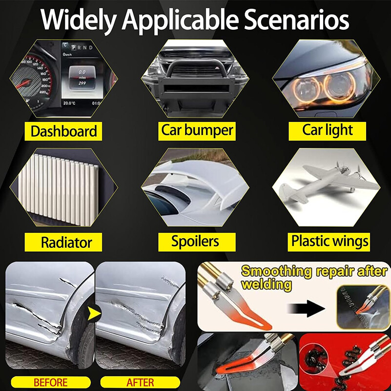 Plastic repair kits can repair 98% of plastic products on the market. Tips: This product is an upgraded 150W welding gun. The instructions has not been updated due to product upgrade. If you receive an old version of the instructions, do not doubt, we ensure that the product itself is a 150 W welding gun. It's just that the instructions was not updated in a timely. Sorry for the inconvenience