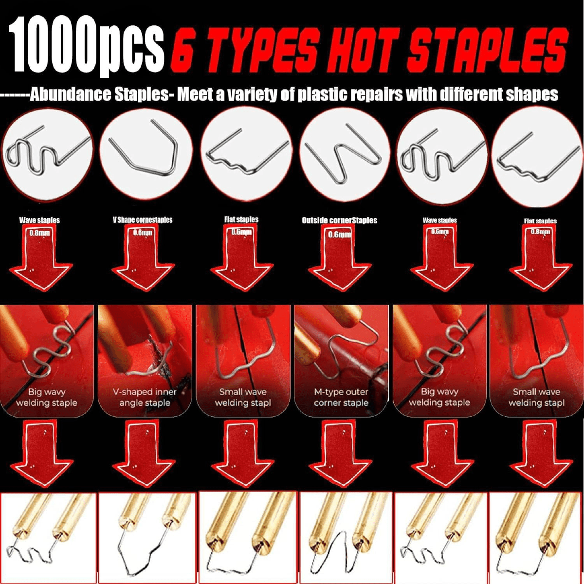 Easy to Use: The plastic welding kit has anti scald protection function,firm welding,easy operation and portability. just press the button to heat and weld the staples into the plastic.The head light illuminates when in use.Comes with different types of welding heads and plastic welding rods, the metal staples will make the broken parts stronger than they were originally.